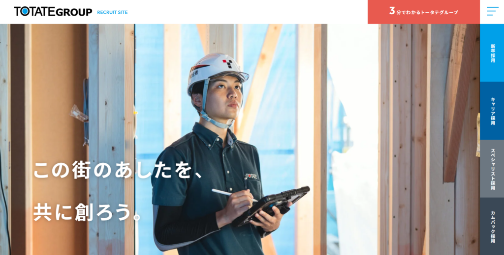 現場で働く社員のリアルな声を多数掲載し、「トータテで働く自分」をイメージしやすいサイトへと進化しました。